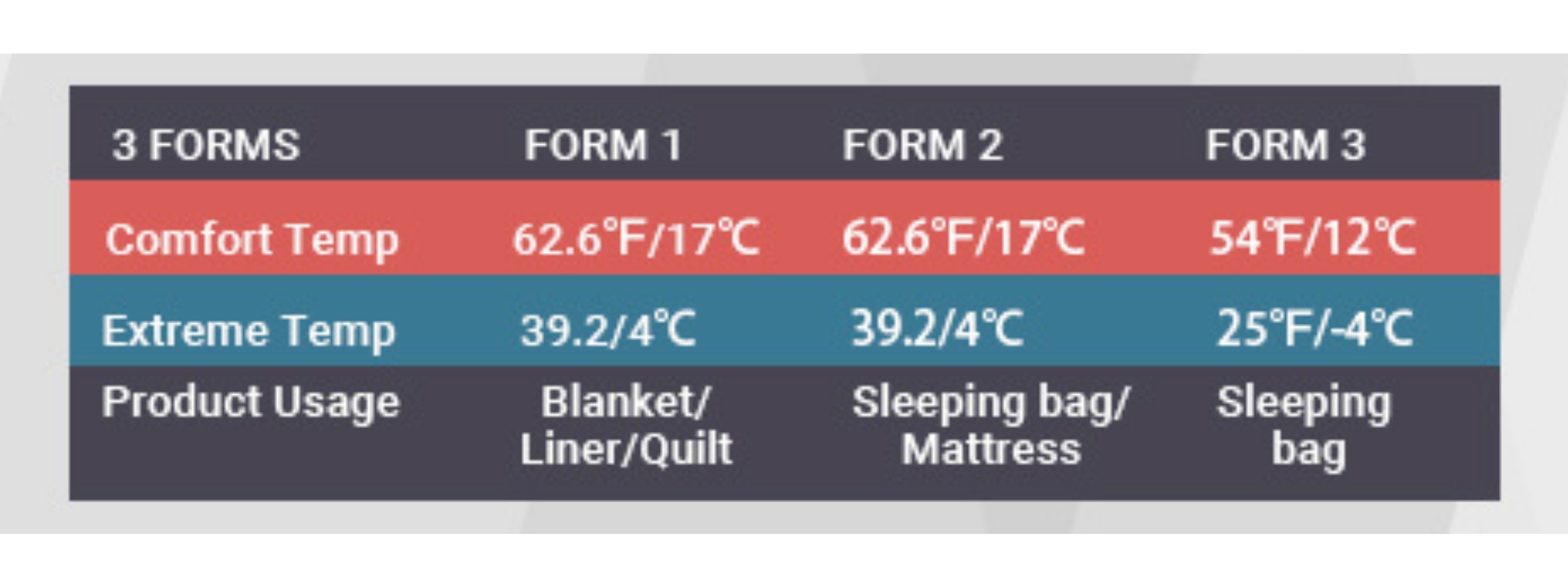 Applicable Temperature Of Each Form