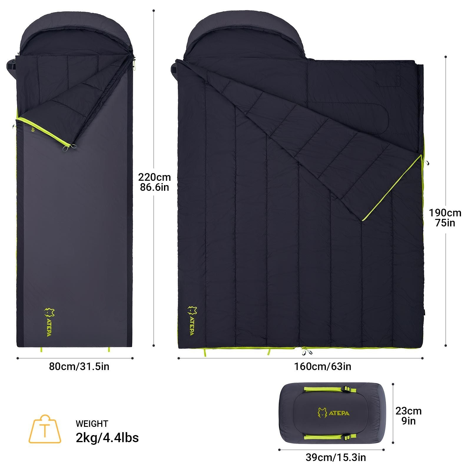 3-in-1 Functionality:Zip two single bags together for a roomy double sleeping bag or fully open it into a travel blanket. Perfect for family trips, picnics, and outdoor adventures.