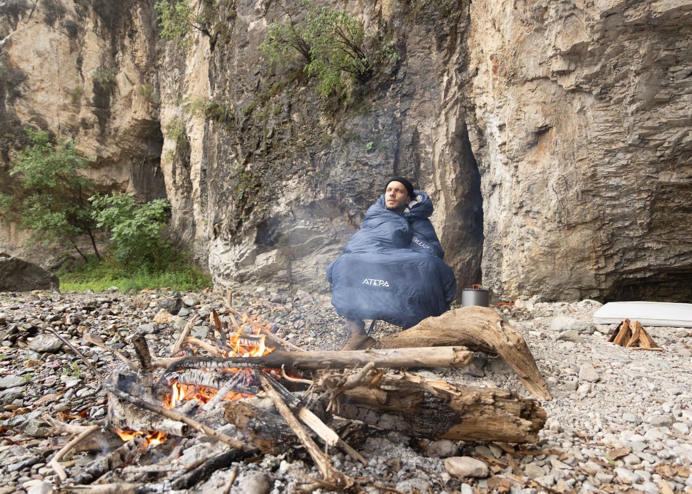 The sleeping bag feels like a super soft puffer jacket. It is very thin though, so you would need a mat or cot under it. It should work well though if you prepare
