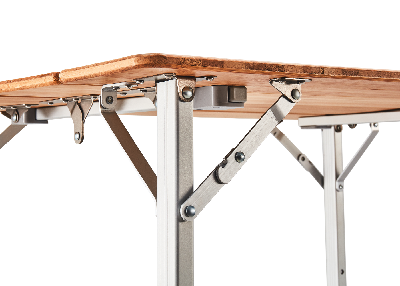 Made from sustainable bamboo, this table combines strength and style with its anodized aluminum frame and sturdy bamboo top. Built to withstand heavy use, it maintains its natural beauty whether for indoor or outdoor use.
